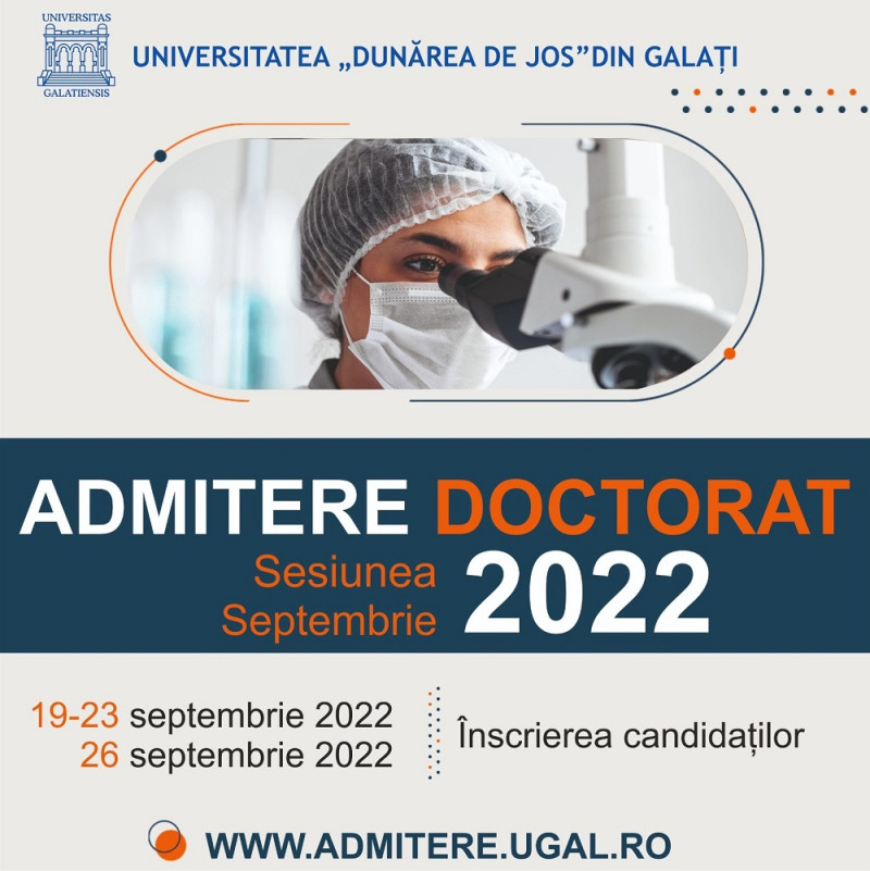 Universitatea „Dunărea de Jos” din Galați scoate la concurs, la admiterea de toamnă, locuri bugetate pentru cele mai noi domenii de Doctorat ale IOSUD UDJG. Este vorba de Marketing (acreditat în cadrul Școlii Doctorale de Științe Socio-Umane prin Ordinul de ministru 4292 din 3.08.2022) și Farmacie (acreditat prin Ordinul de ministru 4513 din 10.08.2022 în cadrul Școlii Doctorale de Științe Biomedicale).