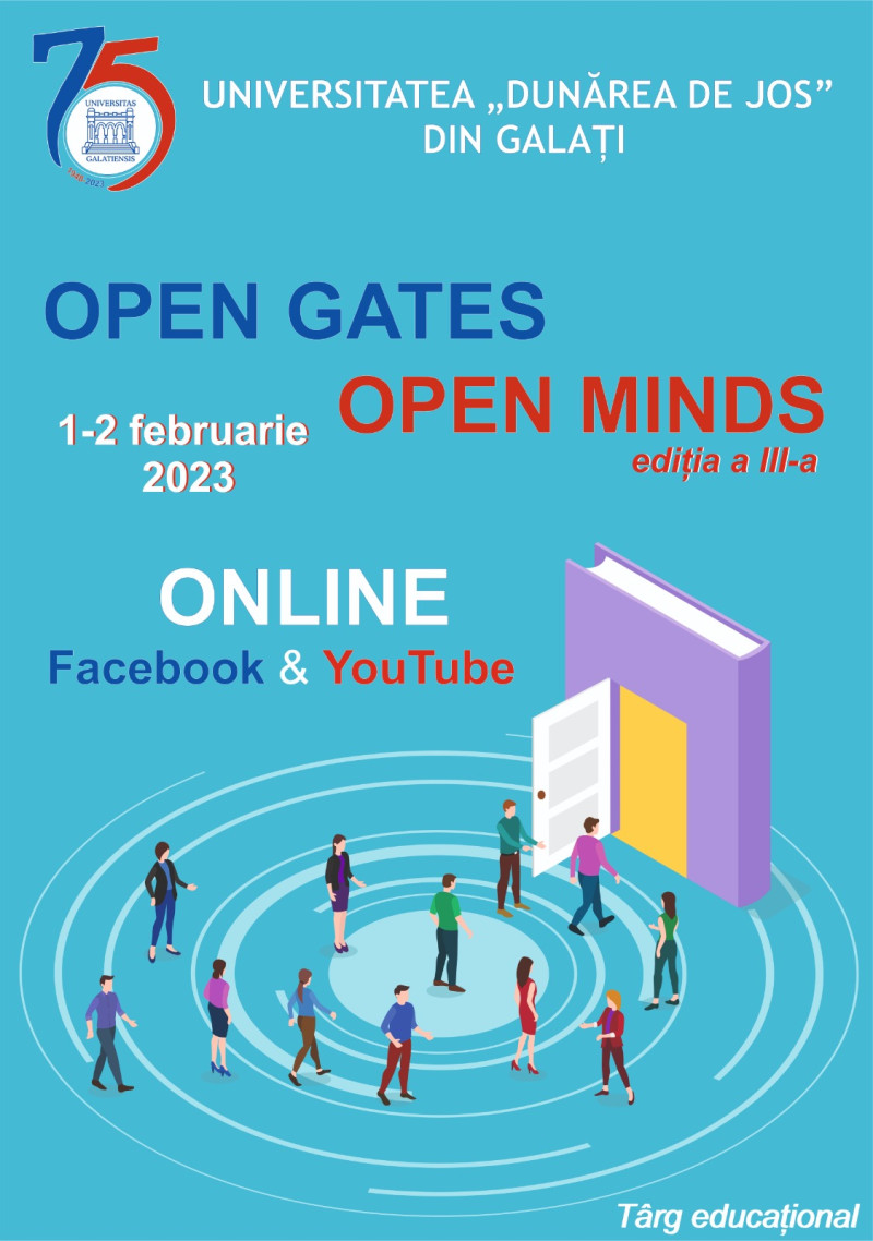 A treia ediție a Evenimentului „Open Gates - Open Minds” la Universitatea „Dunărea de Jos” din Galați s-a desfășurat online în perioada 1-2 februarie 2023. Târgul a prezentat oferta educațională instituțională către elevi de liceu, cadre didactice și părinți din România, Republica Moldova, Ucraina.