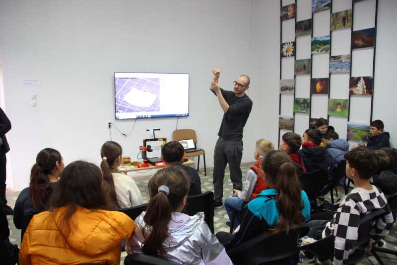 Apoi, în lumina reflectoarelor a intrat Mihai Năstase, inginer în cadrul Facultății de Inginerie, care le-a prezentat copiilor un work-shop interactiv despre dezvoltarea competențelor STEAM prin utilizarea imprimantei 3D și a altor tehnologii educaționale. Copiii au rămas fascinați de demonstrația practică pe au văzut-o cu o imprimantă 3D de la „3D Printing Hub”, dezvoltat în cadrul Centrului de Excelenţă Prelucrarea Polimerilor din cadrul Universităţii „Dunărea de Jos” din Galaţi. Totodată, eu au putut vedea tot felul de obiecte imprimate 3D, de la piese și ansamble, la personaje din filme. În plus, ei putut afla informații interesante despre procesele și timpii de imprimare, materialele folosite, proiectarea pieselor care urmează să fie imprimate, dar și despre tipurile de imprimante 3D existente pe piață.