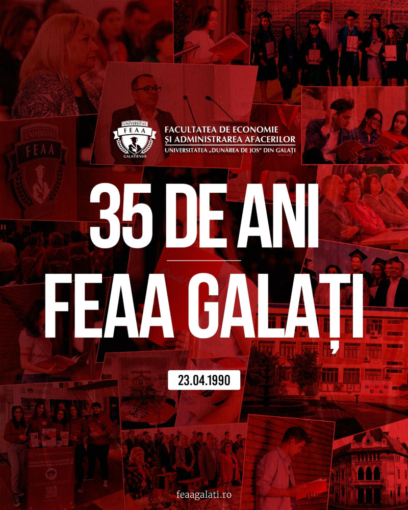 Astăzi, la ceas aniversar, privim cu recunoștință spre vizionarii care au pus bazele acestei instituții, spre profesorii fondatori și spre toți cei care au contribuit la dezvoltarea FEAA Galați într-o instituție de prestigiu, ancorată în valorile excelenței academice și adaptată constant la dinamica mediului socio-economic european. Privim înainte cu încredere și entuziasm, știind că această poveste extraordinară continuă să se scrie prin oameni dedicați și prin aceeași energie care a dat viață fiecărei generații.
