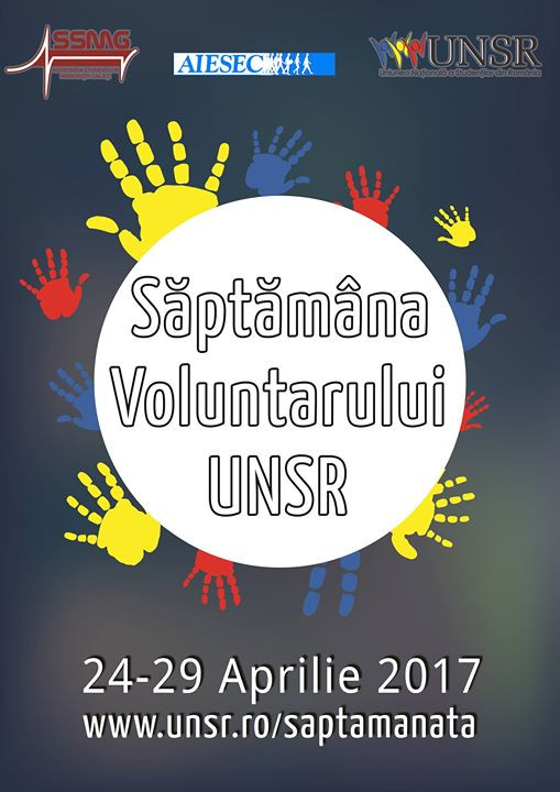 Societatea Studenților Mediciniști Galați (SSMG), în colaborare cu Universitatea „Dunărea de Jos” din Galați și AIESEC Galați, organizează, în perioada 24-29 aprilie 2017, proiectul național „Săptămâna Voluntarului” adresat, deopotrivă, voluntarilor care fac parte din cele două organizații studențești, tuturor studenților Universității „Dunărea de Jos” din Galați, precum și elevilor de liceu care doresc să se implice și să aibă parte de o experiență minunată.