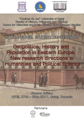 Facultatea de Istorie, Filosofie și Teologie din cadrul Universității „Dunărea de Jos” din Galați, în parteneriat cu Universitatea „B.P. Hasdeu” din Cahul, Republica Moldova, Universitatea „I.I. Mecinikov” din Odessa, Ucraina, Muzeul de Istorie „Paul Păltănea” din Galaţi şi Muzeul Brăilei „Carol I”, organizează în perioada 27-28 aprilie 2017 Conferința Internațională Studențească „Geopolitică, Istorie și Populație în Europa de Est. Noi direcții de cercetare în științele social-umaniste și politice”, ediția a II-a.