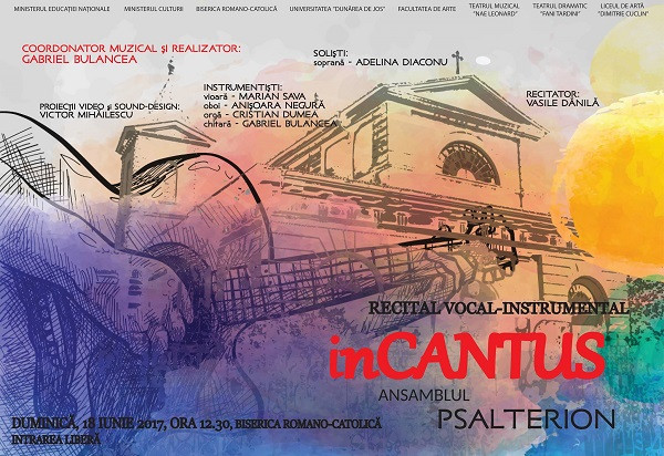 Duminică, 18 iunie 2017, începând cu ora 12,30, Ansamblul PSALTERION, condus de prof. univ. dr. Gabriel Bulancea, de la Facultatea de Arte, vă invită la recitalul vocal-instrumental intitulat inCANTUS.