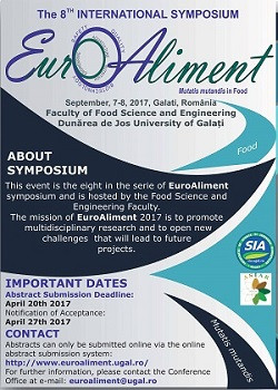 Facultatea de Știința și Ingineria Alimentelor și Universitatea „Dunărea de Jos” din Galați organizează cea de a 8-a ediție a Simpozionului Internațional Euroaliment, având genericul „Mutatis mutandis in Food”.