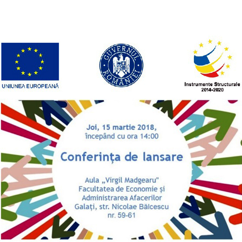 Conferința de lansare a proiectului va avea loc joi, 15 martie 2018, începând cu ora 14.00, în Aula „Virgil Madgearu” a Facultății de Economie și Administrarea Afacerilor, Universitatea „Dunărea de Jos” din Galați, str. N. Bălcescu nr. 59-61.