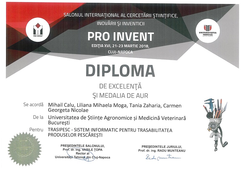 TRASIPESC asigură înregistrarea informațiilor despre pește și produsele pescărești de-a lungul lanțului de producție-aprovizionare-desfacere și identificarea rapidă a acestora de către consumatori şi autoritățile cu atribuţii în domeniul siguranţei şi securităţii alimentare. Sistemul este patentat LA ORDA, cu Licenţă Trasipesc, Cerificatului de înregistrare în Registrul Naţional al Programelor pentru calculator Seria 001016B1 nr. 08158/19.09.2016 RNPC.