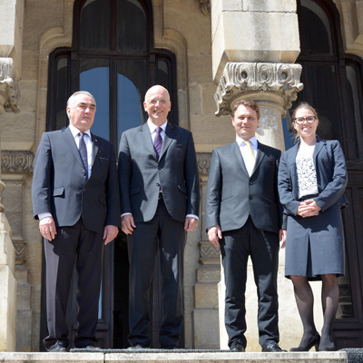 Rectorul Universității, prof. dr. ing. Iulian Bîrsan și prorectorul conf. dr. ing. Ștefan Baltă au prezentat oaspeților structura instituției academice gălățene, potențialul economic al zonei și au discutat despre posibilitatea unor viitoare colaborări între Universitate, Camera de Comerț Româno-Germană și Ambasada Germaniei la București.