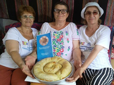 Cele trei doamne, membre ale grupului „Mâini fericite” din cadrul Universității Vârstei a Treia - U3A, au participat la competiția de fotografie „Give a sign of friendship”, cu imagini reprezentând tradițiile coacerii pâinii în zona Dunării de Jos.