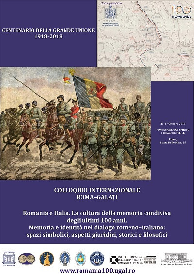 Universitatea „Dunărea de Jos” din Galați a inițiat organizarea Colocviului științific internațional „România şi Italia. Cultura comună a memoriei ultimilor 100 de ani. Memorie şi identitate în dialogul româno–italian: spaţii simbolice, aspecte juridice, istorice şi filosofice”, care se desfășoară la Roma, în perioada 26-27 octombrie, la Fundația Ugo Spirito e Renzo di Felice și Academia di Romania din Roma și la Galați în perioada 23-24 noiembrie 2018.