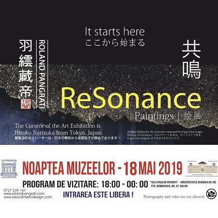 Universitatea „Dunărea de Jos” din Galați se înscrie în circuitul muzeal dedicat evenimentului european Noaptea Muzeelor 2019 cu expoziția temporară ReSonance – Artă picturală japoneză, realizată de artistul plastic gălățean Roland Pangrati. Curatoarea expoziției este Hiroko Narizuka, din Tokyo, Japonia. Expoziția este rodul colaborării între Muzeul Spiritualității Creștine de la Dunărea de Jos și instituția gazdă și va fi deschisă în Sala pașilor pierduți de la sediul Rectoratului, în perioada 18 – 24 mai 2019 (putând fi vizitată în noaptea de 18 - 19 mai până la miezul nopții).