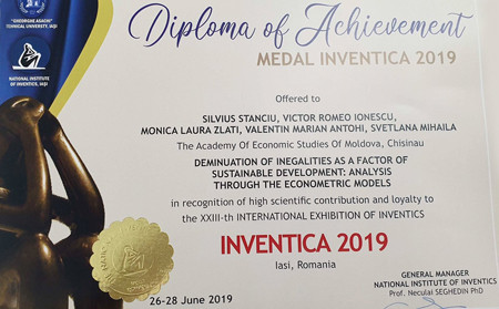 Premiul I și Medalia de Aur la Expoziţia Internaţională de Invenţii „Inventica 2019” au fost obținute de o echipă internațională de cercetători din România (Universitatea „Dunărea de Jos” din Galați și Universitatea „Ștefan cel Mare” din Suceava) și din Republica Moldova (Academia de Studii Economice Moldova), coordonată de prof. dr. Silvius Stanciu, prof. dr. Victor Romeo Ionescu și conf. dr. Valentin Marian Antohi de la Universitatea „Dunărea de Jos” din Galați.