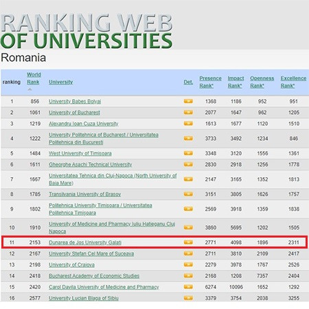 Universitatea „Dunărea de Jos” a obținut punctaje mari la relevanţa cercetării, calitatea conţinutului publicat şi vizibilitatea din mediul online.