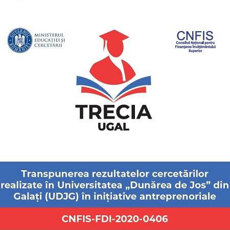 În cadrul proiectului "Transpunerea rezultatelor cercetărilor realizate în Universitatea „Dunărea de Jos” din Galați (UDJG) în inițiative antreprenoriale - TRECIA" (CNFIS-FDI-2020-0406) se organizează, în perioada 21.09.2020 – 16.10.2020, procesul de înregistrare și selecție a doctoranzilor, masteranzilor și absolvenților din cadrul Universității „Dunărea de Jos” din Galați (promoțiile 2018, 2019, 2020), care doresc să urmeze cursul de Expert Accesare Fonduri Structurale și de Coeziune Europene.
