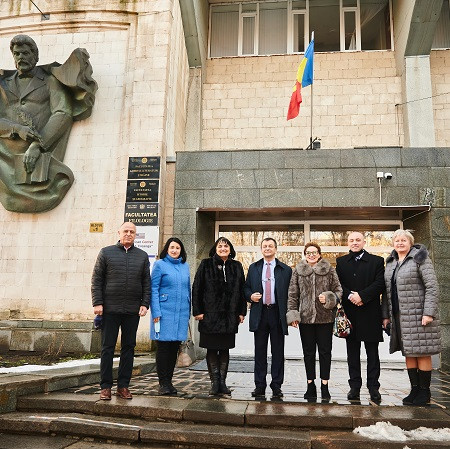 Prof. univ. dr. ing. Puiu Lucian Georgescu, Rectorul Universității „Dunărea de Jos” din Galați a efectuat, în perioada 10-11 februarie, o vizită în R. Moldova, fiind însoțit de o delegație din care au făcut parte: Conf. univ. dr. Gina Aurora Necula, Decanul Facultății Transfrontaliere, Conf. univ. dr. Mariana Carmelia Bălănică-Dragomir, Director al Departamentului de Științe Aplicate din cadrul Facultății Transfrontaliere și domnul Ionel Constantin Mitea, asistent universitar în cadrul acestei facultăți.