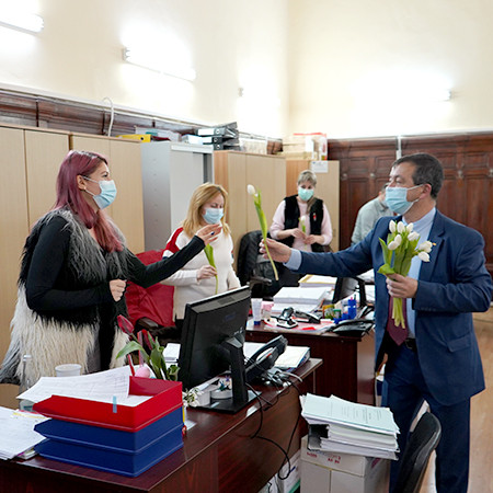 „Mărțișorul este considerat un gest plin de optimism și credință, un obicei care <<apropie soarele>>, cum spunea poetul George Coșbuc și care aduce culoare în viața noastră. Se obișnuiește ca bărbații să ofere doamnelor și domnișoarelor mărțișoare, în semn de respect și prețuire. Noi am dăruit astăzi flori de primăvară, și am urat tuturor femeilor din Universitatea <<Dunărea de Jos>> din Galați sănătate, în primul rând, bucurii nenumărate, putere de muncă și multe împliniri”, a declarat prof. dr. Puiu Lucian Georgescu, Rectorul Universității “Dunărea de Jos” din Galați.