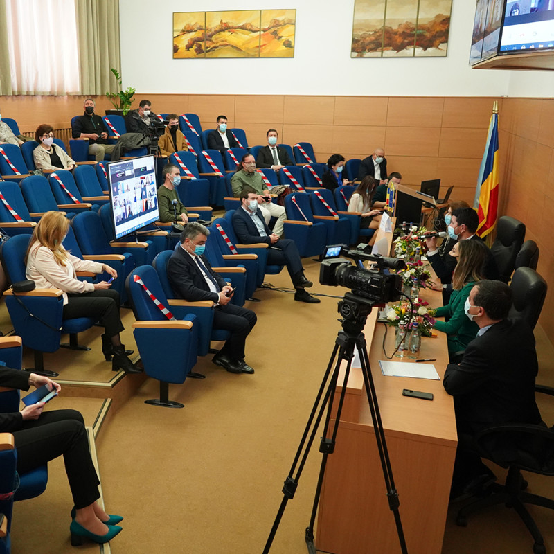 „Ne dorim să ne implicăm, să colaborăm cu partenerii noștri, să facem prevenție și să dăm un exemplu personal, pentru ca în scurt timp să ne putem relua activitățile didactice și de cercetare față în față”, a declarat, în deschiderea întâlnirii, prof. univ. dr. Puiu Lucian Georgescu, Rectorul Universității „Dunărea de Jos” din Galați.