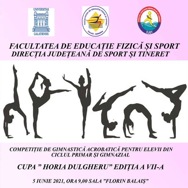 Competiția de gimnastică acrobatică pentru elevii din învățământul preuniversitar Cupa „Horia Dulgheru”, ajunsă la a șaptea ediție, se desfășoară în ziua de 5 iunie 2021, începând cu ora 9.00, la Sala „Florin Balaiș” a Universității „Dunărea de Jos” din Galați.