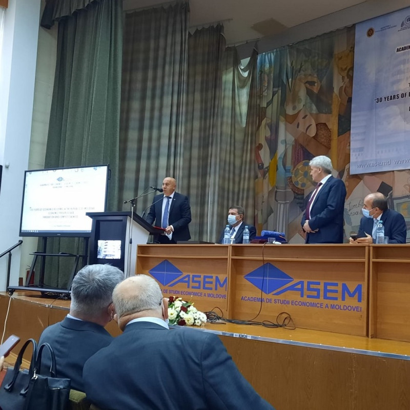 Academia de Studii Economice a Moldovei a celebrat 30 de ani de la înființare, prilej de mare sărbătoare în comunitatea academică de peste Prut. O delegație a Universității „Dunărea de Jos” din Galați, condusă de prof. univ. dr. ing. hab. Silvius Stanciu, Prorectorul UDJG, a dat curs invitației partenerilor și a oferit o plachetă aniversară celor din conducerea Academiei. ASEM a fost înființată la 25 septembrie 1991, conform Hotărârii nr. 537 a Guvernului Republicii Moldova.
