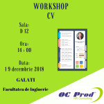 Compania ORGANISATION CONSULTING PROD, specializată în servicii şi consultanţă în resurse umane (www.ocprodgroup.com), organizează Workshop-ul „CV” pentru a oferi studenților informații privind oportunități legate de piața forței de muncă şi modalități de a-şi maximiza șansele de integrare pe piața muncii.