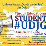 Universitatea „Dunărea de Jos” din Galați organizează miercuri, 16 noiembrie 2022 ultima ediție din acest an a Târgului Educațional „Student #UDJG”. Elevii de liceu din județul Brăila, dar și de la cele două licee din orașul Măcin, sunt așteptați la sediul Facultății de Inginerie și Agronomie din Brăila (Calea Călărașilor nr. 29) pentru a afla detalii despre programele de studiu și condițiile de cazare oferite de Universitatea „Dunărea de Jos” din Galați.